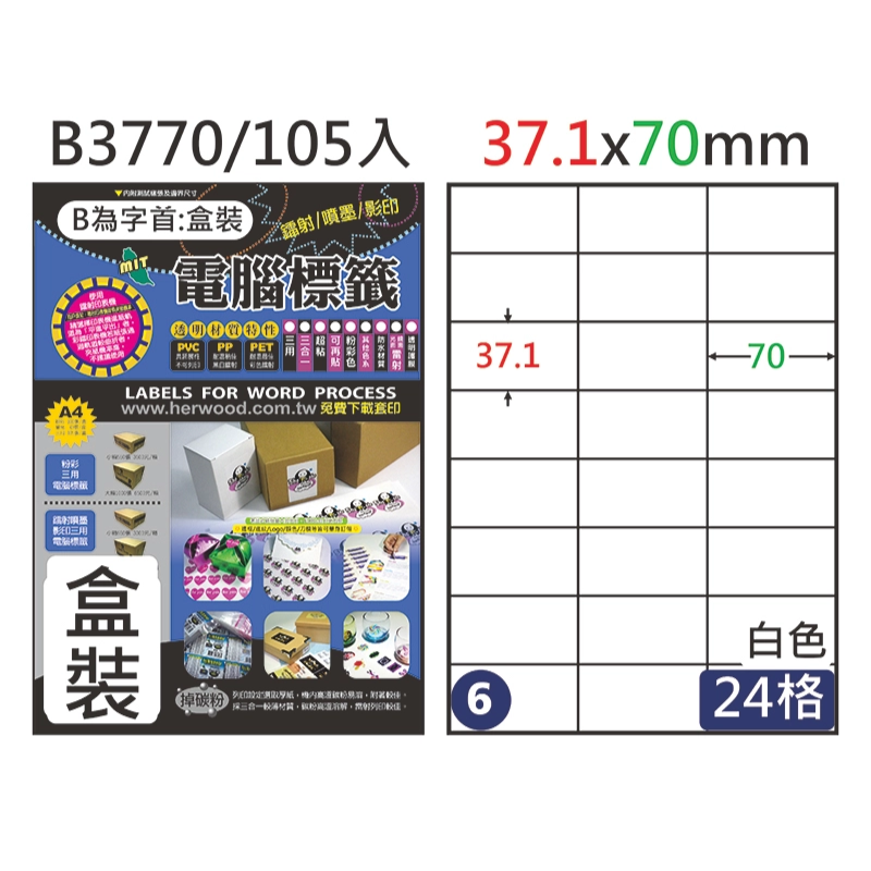 三用電腦標籤 #006 B3770 白 24格 105入 / 37.1×70mm