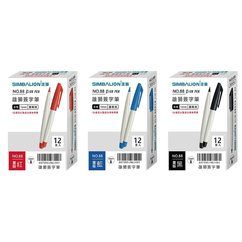 雄獅 NO.88 簽字筆 12入 1mm 水性簽字筆