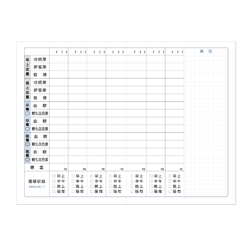 血糖/血壓紀錄表:28 頁