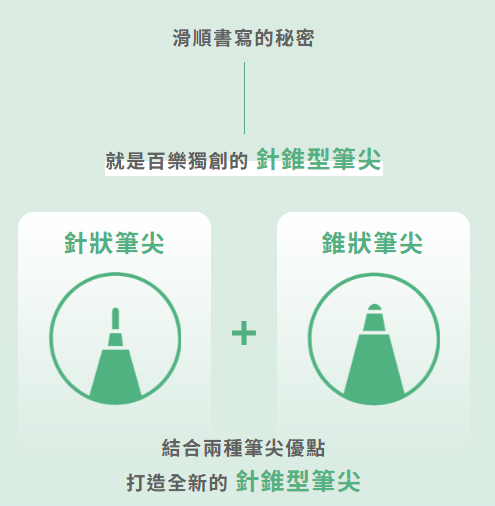 四點支撐新型筆尖,結合針尖靈活與錐尖穩定,書寫更滑順。