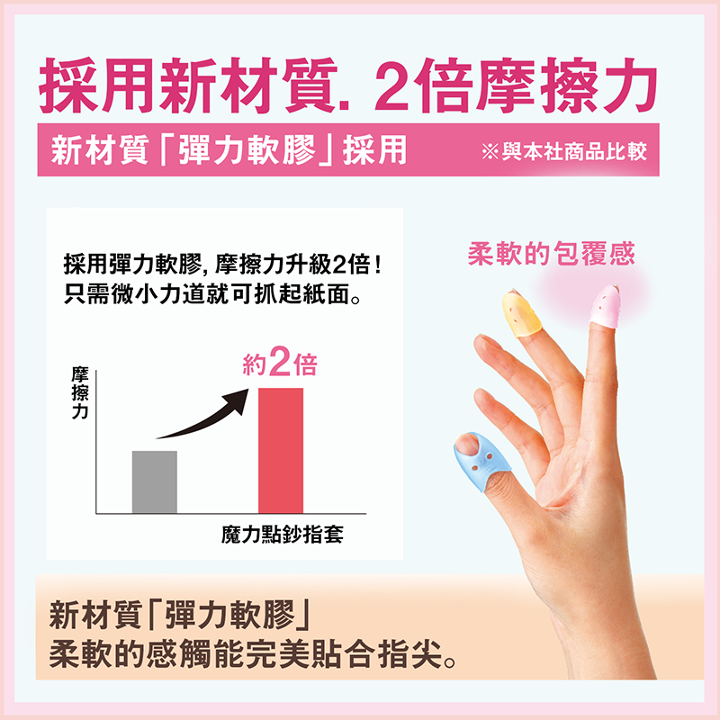 新材質 TPE 彈性軟膠,柔軟服貼指尖,透氣不悶熱